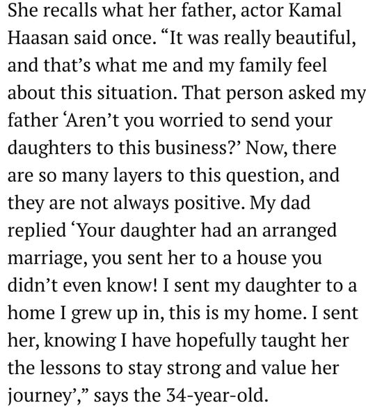 What the actress Shruti Hassan said reminds me of what my dad said when someone asked him, why would you want to send your only child so long away to Delhi for further studies.